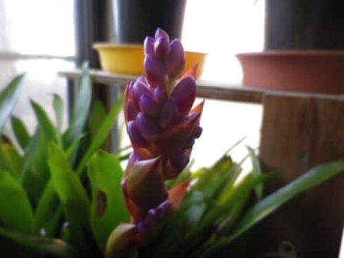 温室の鉢達に変化が出てきました。シンビジュームにやっと花芽がでました。