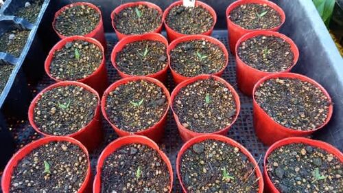 ご近所の菜園仲間と話していたら、空きナス用に3本欲しいな、と言う事で、俺の畑で植える物のついでに、5/31に16個の種蒔きをして置きました。気温が高いと意外と発芽が早いです。