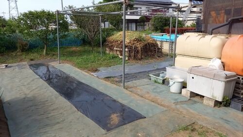 毎年同じ場所ですが、今年もカボチャ畝完成しました。今年は、天井のネットも張るので時間が無い。