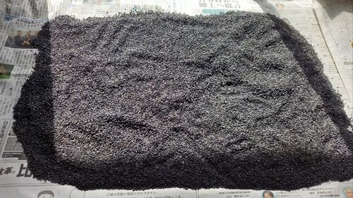 ゴマ、収穫して乾燥させてからの収穫処理した物。我が家に持って来て、ごみを取り除いたり、実が入って無い軽い物を取り除きました。これで保存するだけです。固定種「黒ゴマ」固定種「金ゴマ」