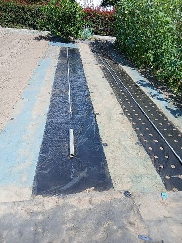 丁寧に耕転して置いた西の畑の玉葱跡地、「穴無し黒マルチ」3本完成しました。 キャベツ、白菜、大根類の種蒔き場所にしました