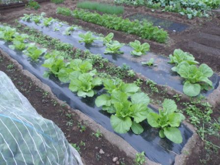 2010-10-23 直播のその後 #はくさい #白菜 第二弾の直播、手前が白菜〔松島純二号〕と奥が白菜〔キムチ白菜〕です。始めての直播に挑戦でしたが、まあまあですかね。マルチの穴に3個の種を蒔き、これくらいになるまで間引きを待ち、間引いた物はしっかり食べる。発育はバラバラになってしまい、小さいものは結球してくれないかも。