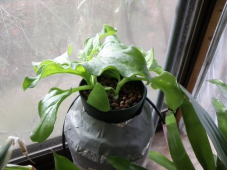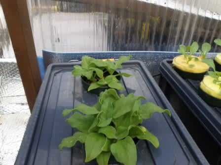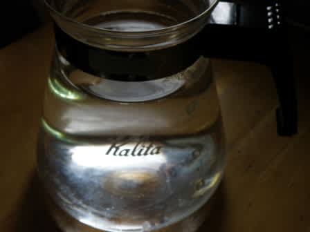 2010-12-04 塩水をあげましょう #アイスプラント 天然塩です。適当な量です水を入れてかき回し温室のエアリフト式水耕栽培に 温室のプランター植えも水耕栽培ハウスのルートラップの中にもエアレーション仕様にもKaritaのコーヒーサーバーに2杯作ってジャバジャバあげておいた。