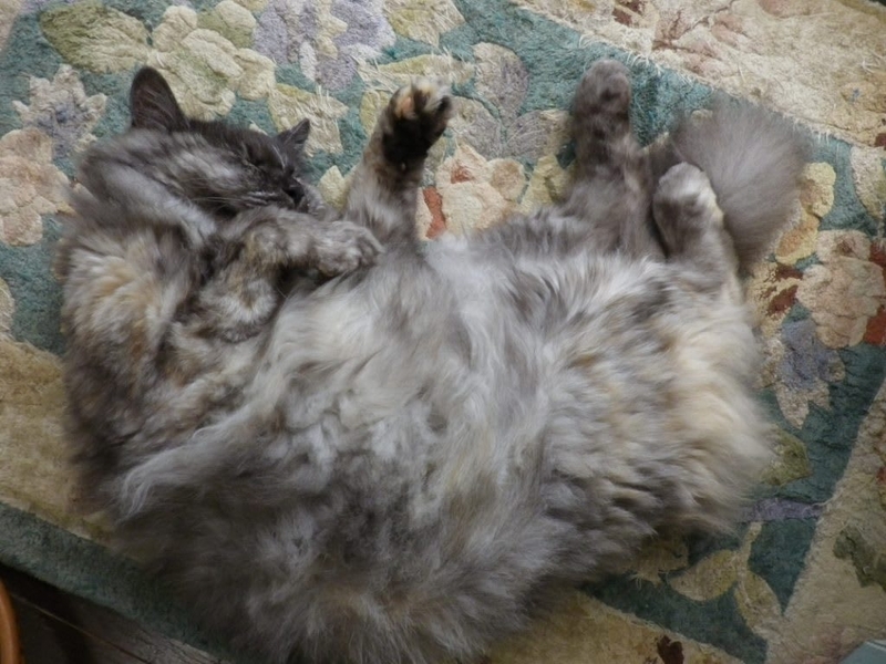 ここ数日、過ごしやすい気温になったので、居間の窓際でカーペットと同化しています。