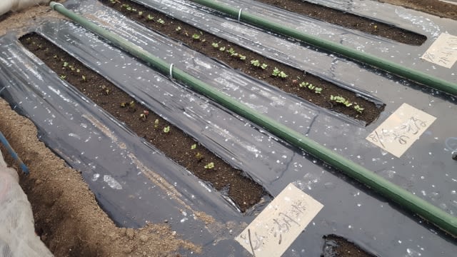 8/26に種蒔きした夏蒔き中生「湖水」と10月蒔き早生「おきな」です。