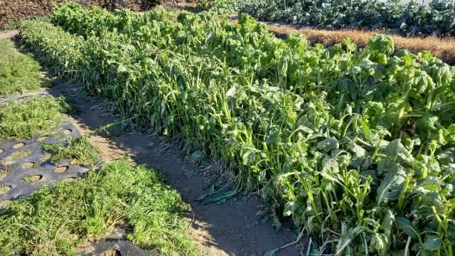 2021-01-05 アスパラ菜、2回に分けて蒔いたけれど・・・・ #なばな #のらぼう菜 #つみ菜 #あすぱら菜 左から、人参、アスパラ菜、菜花です。 アスパラ菜は、手前半分は9/22と奥の半分は10/12に種蒔きして、収穫時期をずらす計画でしたが、初期収穫は良かったのですが、低温が続くと、御覧の通り。 背丈だけが違っているだけで、寒さにやられてしまいました。 俺の畑では、9/15と10/1と10/10の三回が正解のようだ。 #アスパラ菜 #種蒔き #俺の畑 #家庭菜園