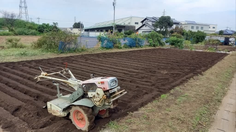 2024-10-09 耕運しました🎵 #畑の手入れ #収穫品色々 西の畑の全てを耕転しました。西瓜の跡地等、「石灰窒素」を撒いて耕転して置いた。トマト畝、胡瓜畝人参、キャベツ、胡麻、カボチャ等跡地には「牡蠣殻石灰」を撒いて耕転して置いた。